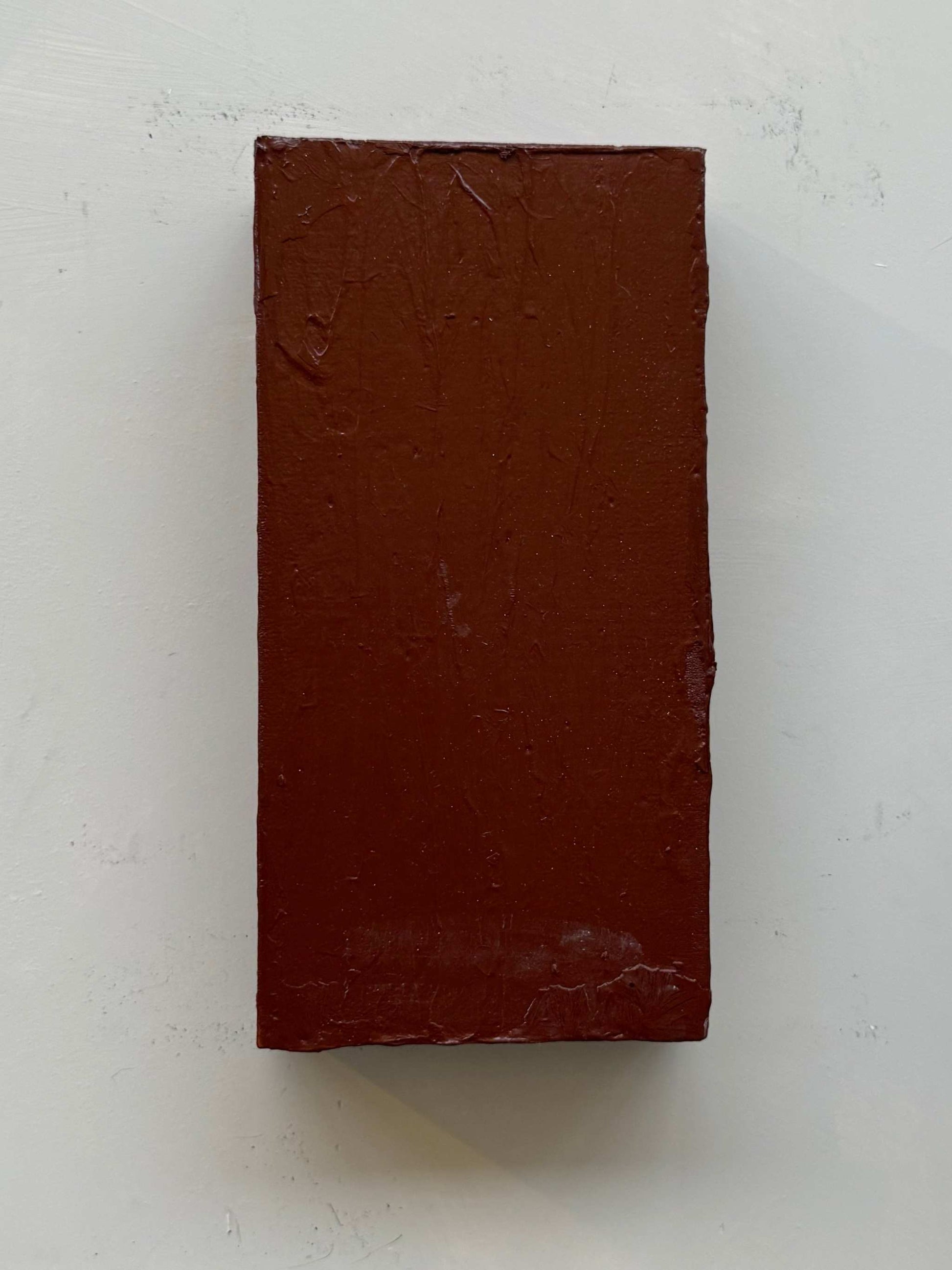 A sculptural object created from packaging material, transformed through color and wax. What was once a temporary, overlooked fragment becomes a solid shape with presence — a quiet object on the wall.