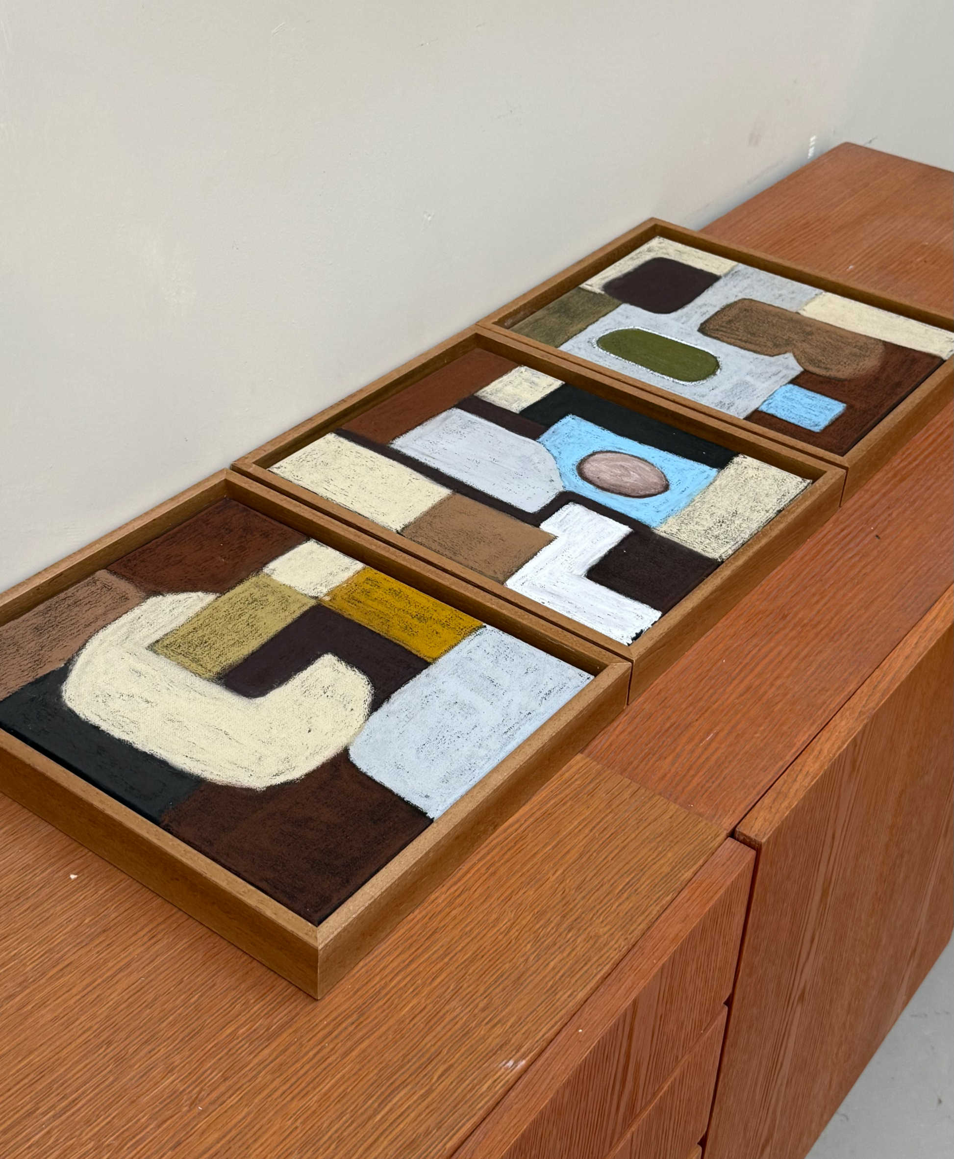 Shapes float in quiet balance, creating a gentle dialogue between round and linear elements.